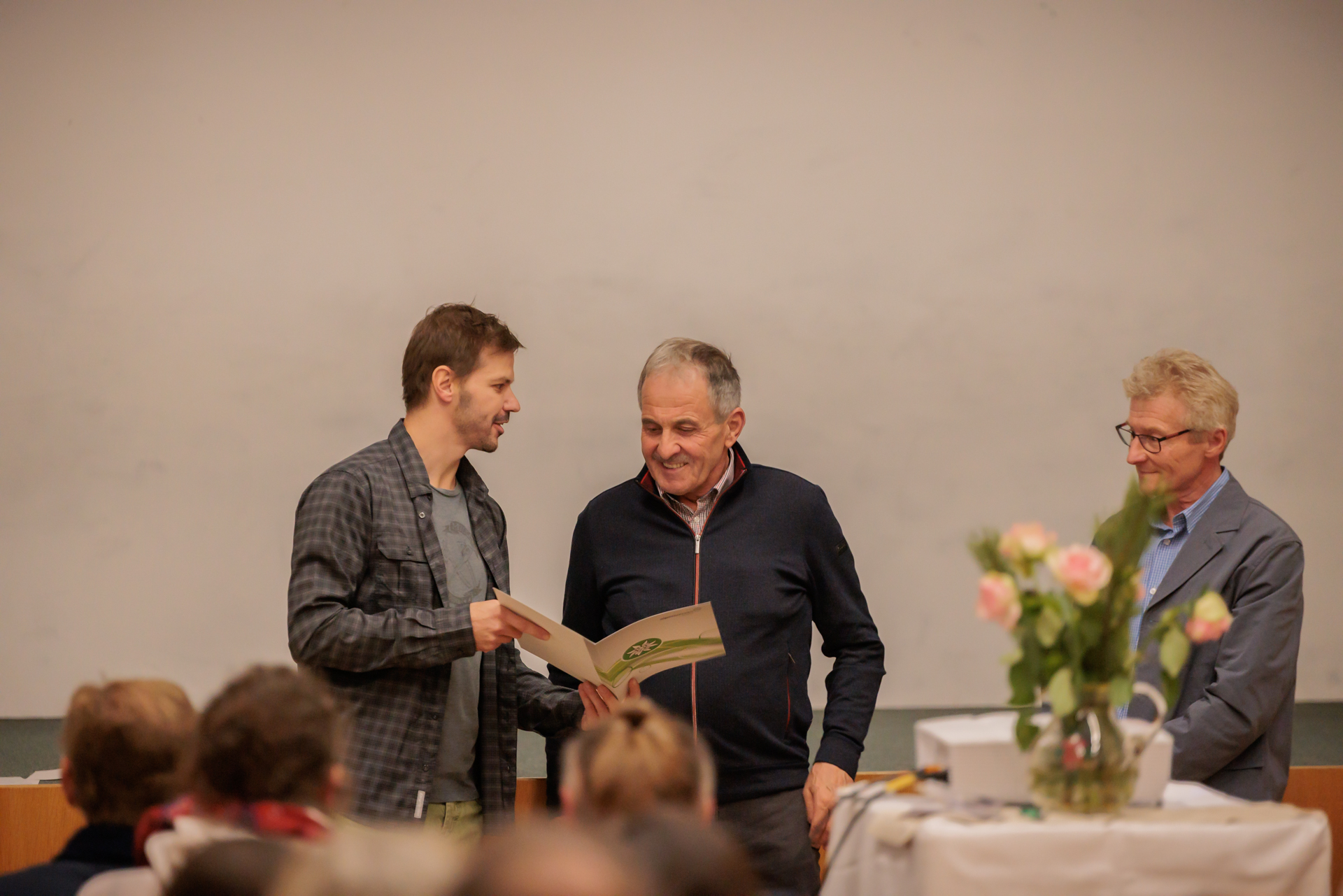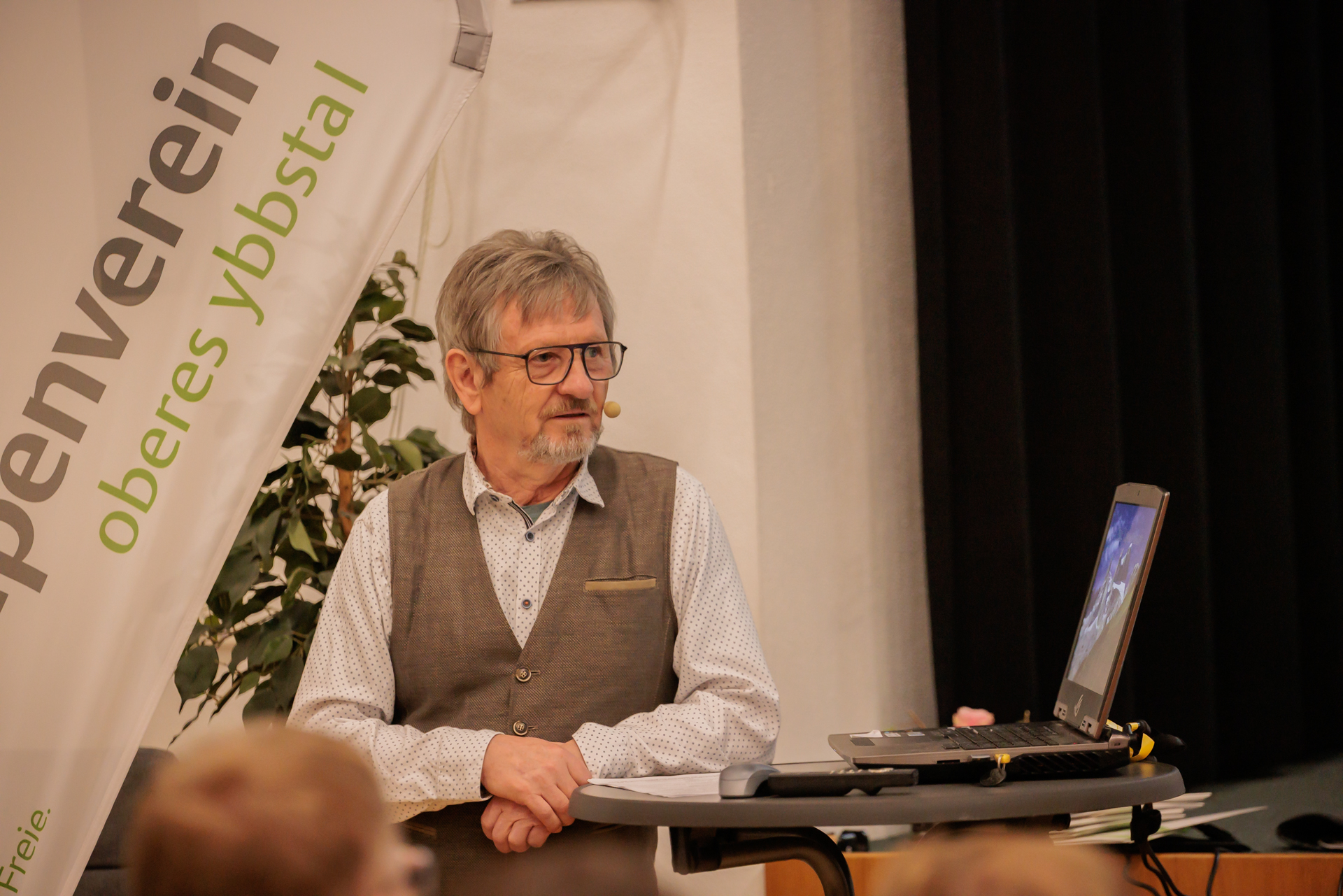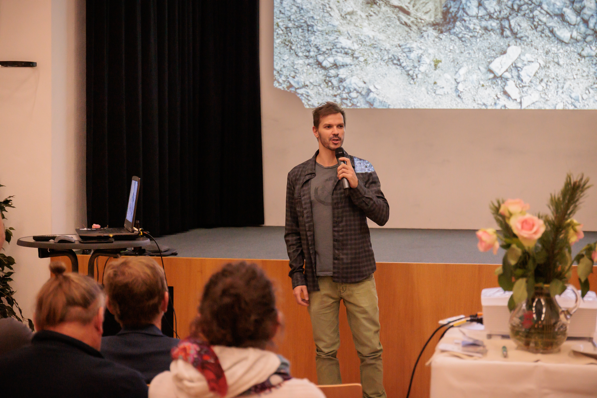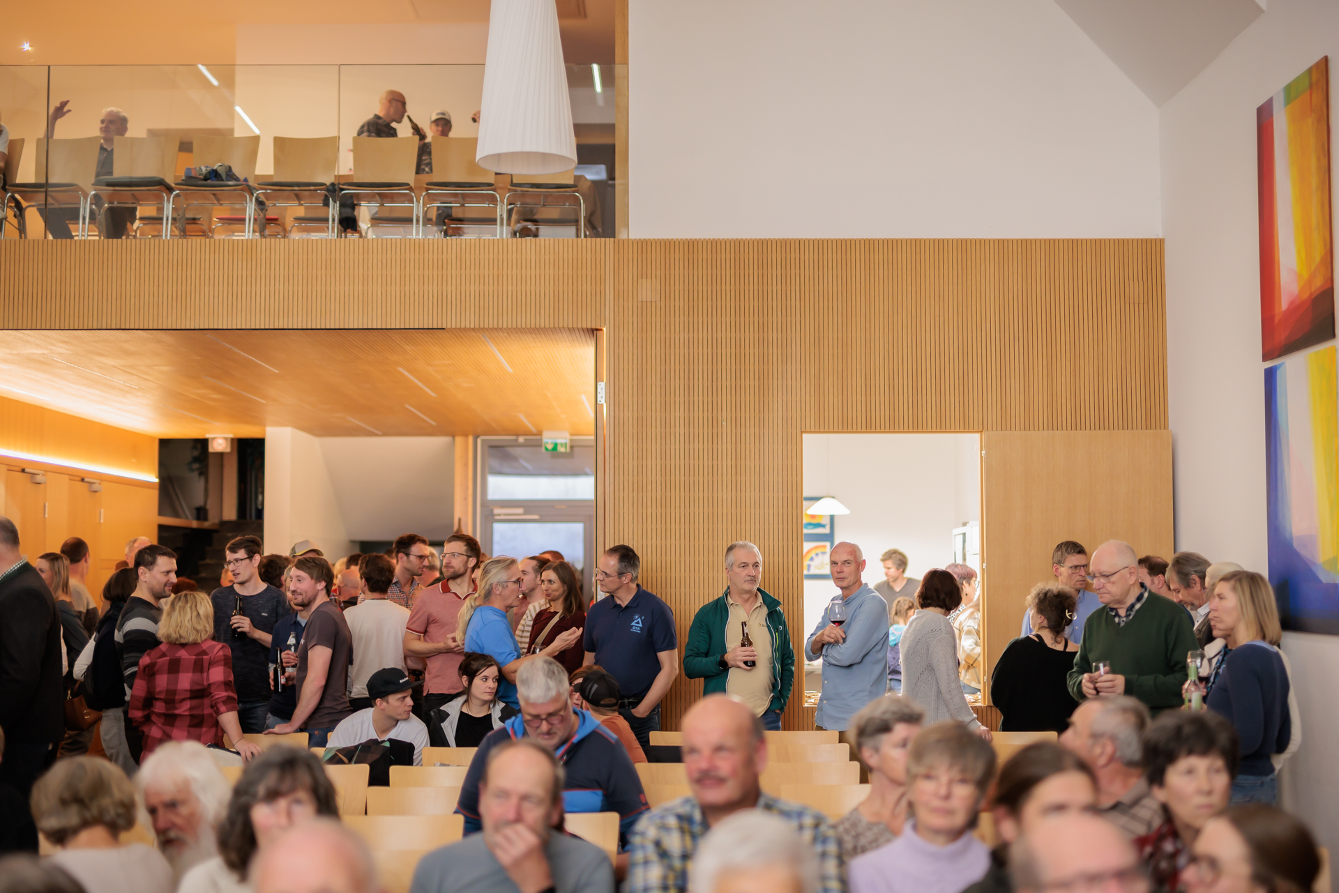 Dann war es Zeit für den mit Spannung erwarteten Vortrag: Beat Kammerlander begeisterte das Publikum mit eindrucksvollen Bildern, persönlichen Geschichten und tiefen Einblicken in seine außergewöhnliche Kletterkarriere. Mit seiner ruhigen, authentischen Art nahm er die Zuhörer mit auf eine Reise an steile Felswände und zu Momenten, in denen Mut, Kreativität und mentale Stärke entscheidend waren.